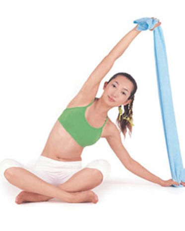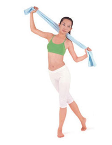 第3階段〈拉毛巾塑身〉:是屬全身性運(yùn)動(dòng),運(yùn)用軀體和四肢肌肉的協(xié)調(diào)性,帶動(dòng)肌肉群活絡(luò),緊實(shí)曲線,使三圍凹凸有致。